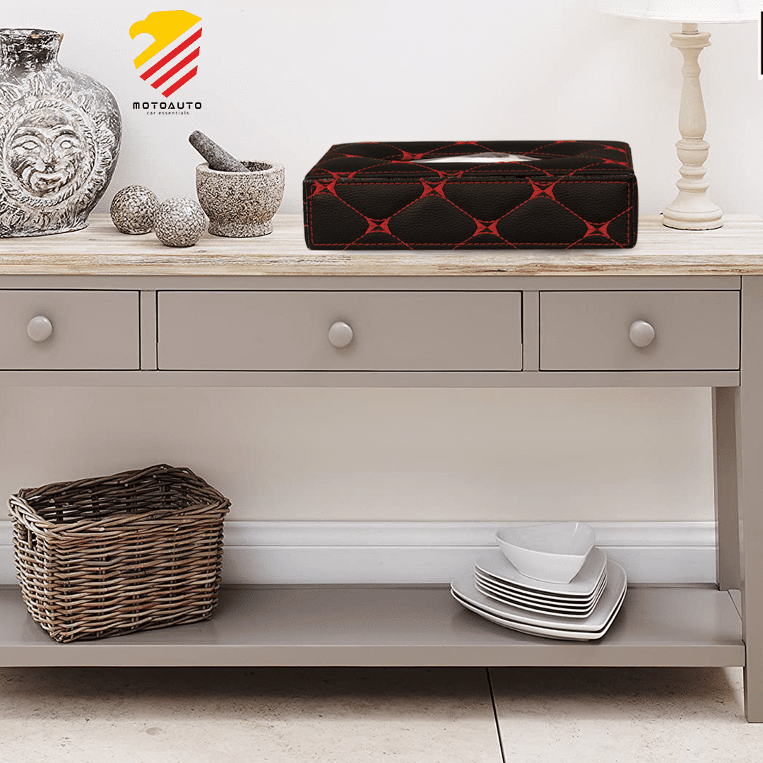 Upgrade your car’s interior with the Amato Automotive Premium Car Tissue Box in an elegant Black/Red design. Crafted with high-quality materials, this stylish and functional accessory ensures easy access to tissues while adding a touch of sophistication to your vehicle.