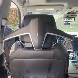 A hanger typically consists of a hook or rod attached to either the headrest or back of a car seat, with some models featuring folding features to allow them to be stored away when not needed. This saves space while avoiding obstruction or inconvenience for passengers.